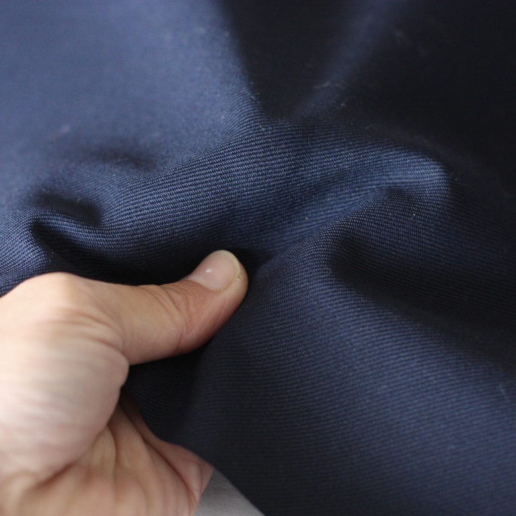 サージ織りは斜めに織り目が現れる綾織の代表選手、表面をクリアカットすることで毛羽立ちを抑えた滑らかな手触りと光沢感があります